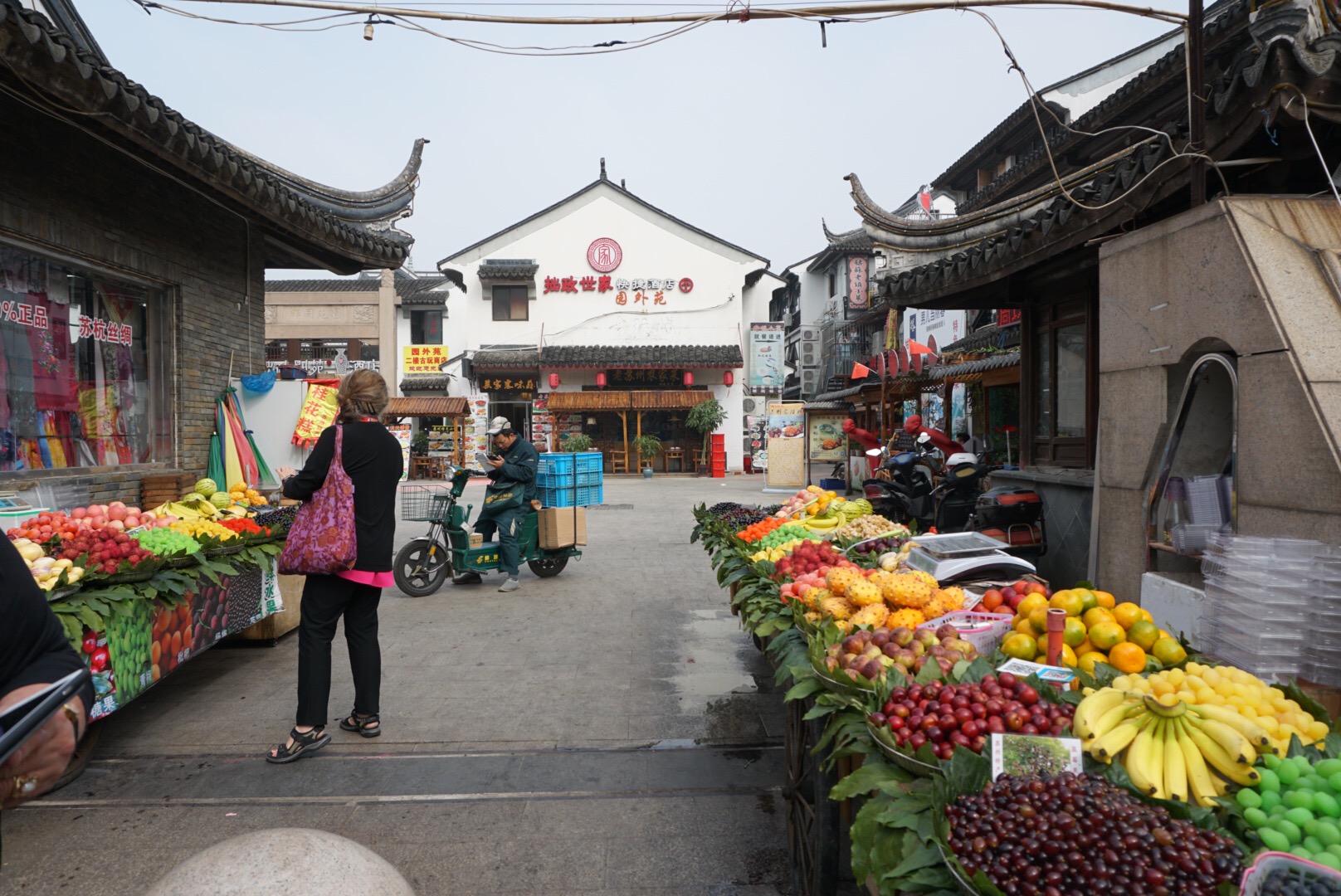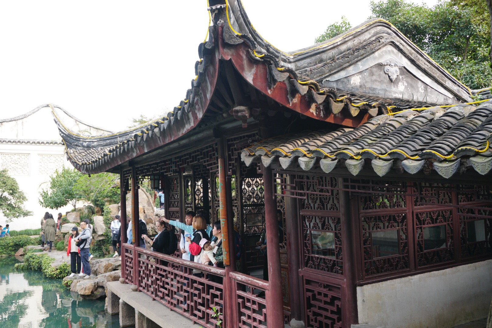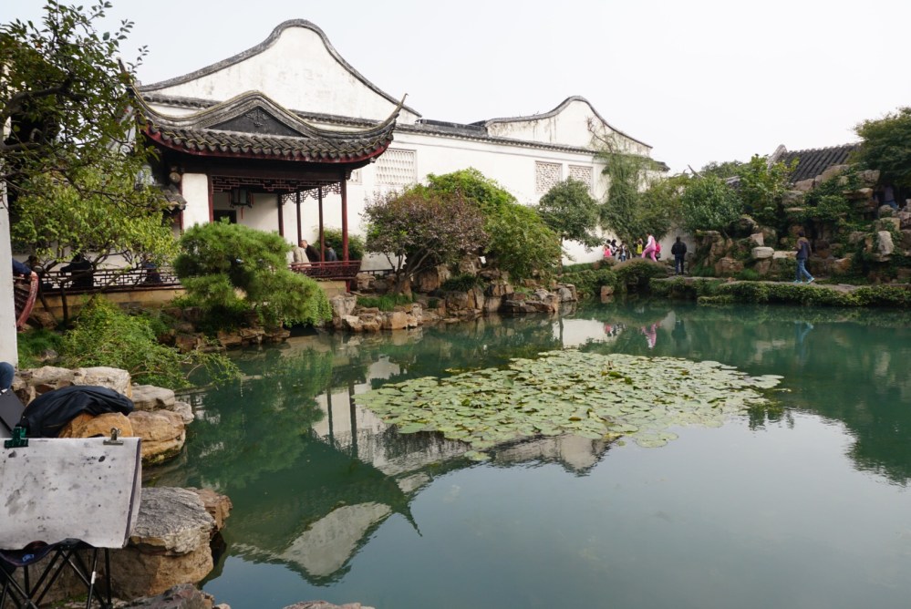 Yesterday in Suzhou was a perfect example. We would never have gone on our own. The four and half hour round trip driving would have kept us from going, and we really wanted to go! We wanted to see the canals, walk the streets lined with cute shops, and food stalls. We wanted to taste some of the local fare, take our time, and then head back to Shanghai. That would have been my perfect itinerary, but there were 38 others we had to consider so instead after the canals we went to a so so chinese restaurant for lunch chosen because it could easily accommodate large groups. Then we headed to a very small, crowded garden and were politely required to stay with our large tour group and listen to our local guide. I could not see well because we were packed into several small spaces as we went from room to room. I was also having trouble hearing the guide. Don’t get me wrong the garden was lovely, as you can see from the photos, but it felt claustrophobic and I was ready to go back to Shanghai.