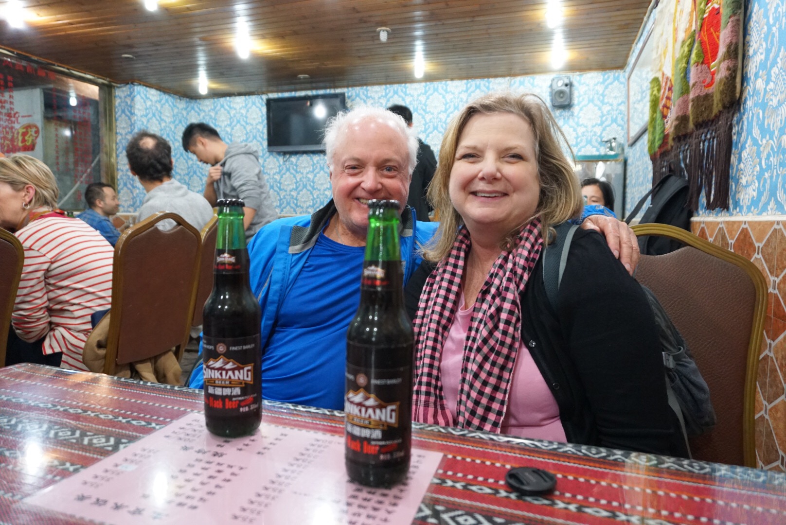 Last night Russell and our friends and travel companions, Stephanie and Bruce (pictured above) had dinner with a group of expats – teachers for the English speaking International School in Shanghai. This fun group of 6 included a couple from Ireland, two single women one from from Great Britain and one from Ireland and a hilarious Australian woman with her very entertaining British husband. Those two met overseas and have continued to travel, teaching around the world.